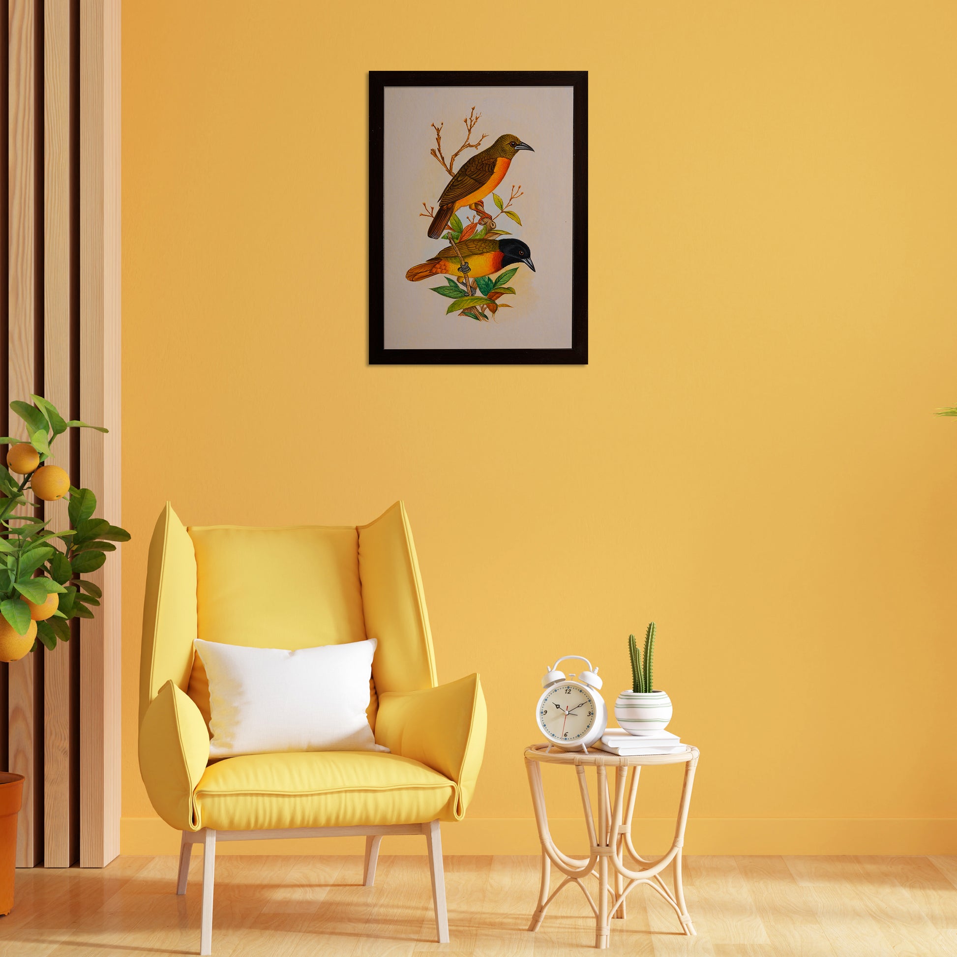 Bring the beauty of nature into your home with this handmade Indian bird painting featuring a pair of Scarlet Minivets perched gracefully on a tree branch. Painted using traditional techniques, every detail from the feathers to the foliage is carefully hand-rendered, making it a timeless piece of art.